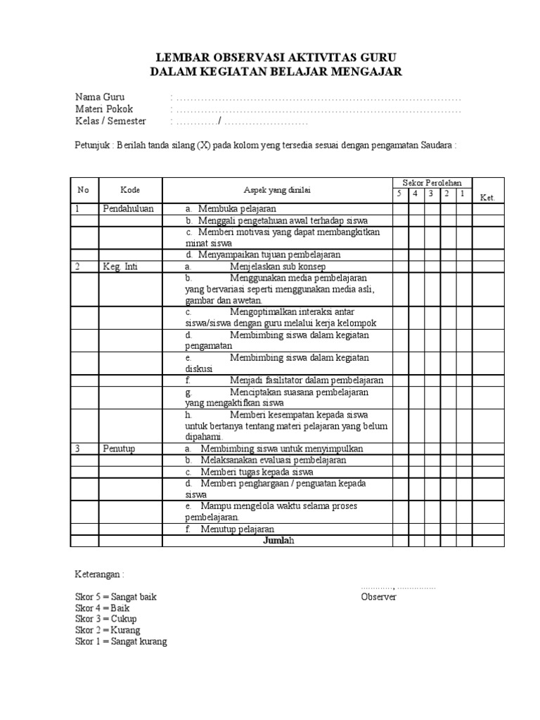Lampiran 5 Lembar Observasi Pengamatan Kinerja Guru Terisi from data03.123doks.com Check spelling or type a new query. We did not find results for: Maybe you would like to learn more about one of these?