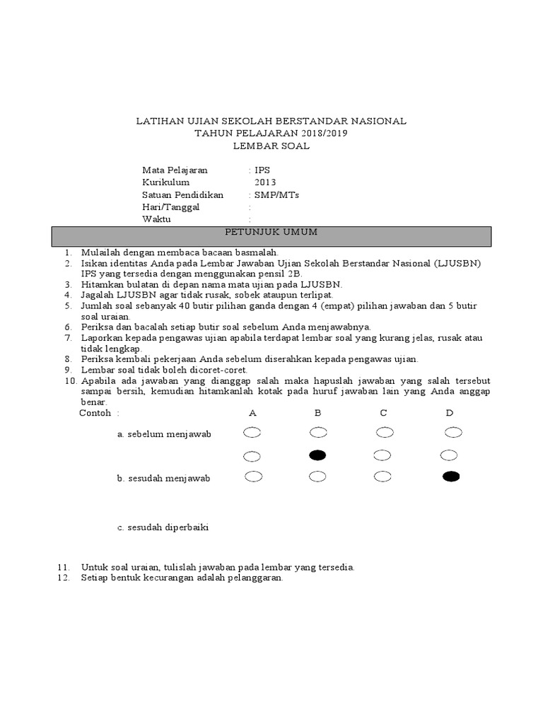 Berikut ini adalah arsip berkas latihan soal dan kunci jawaban usbn ips smp 2019 k13.